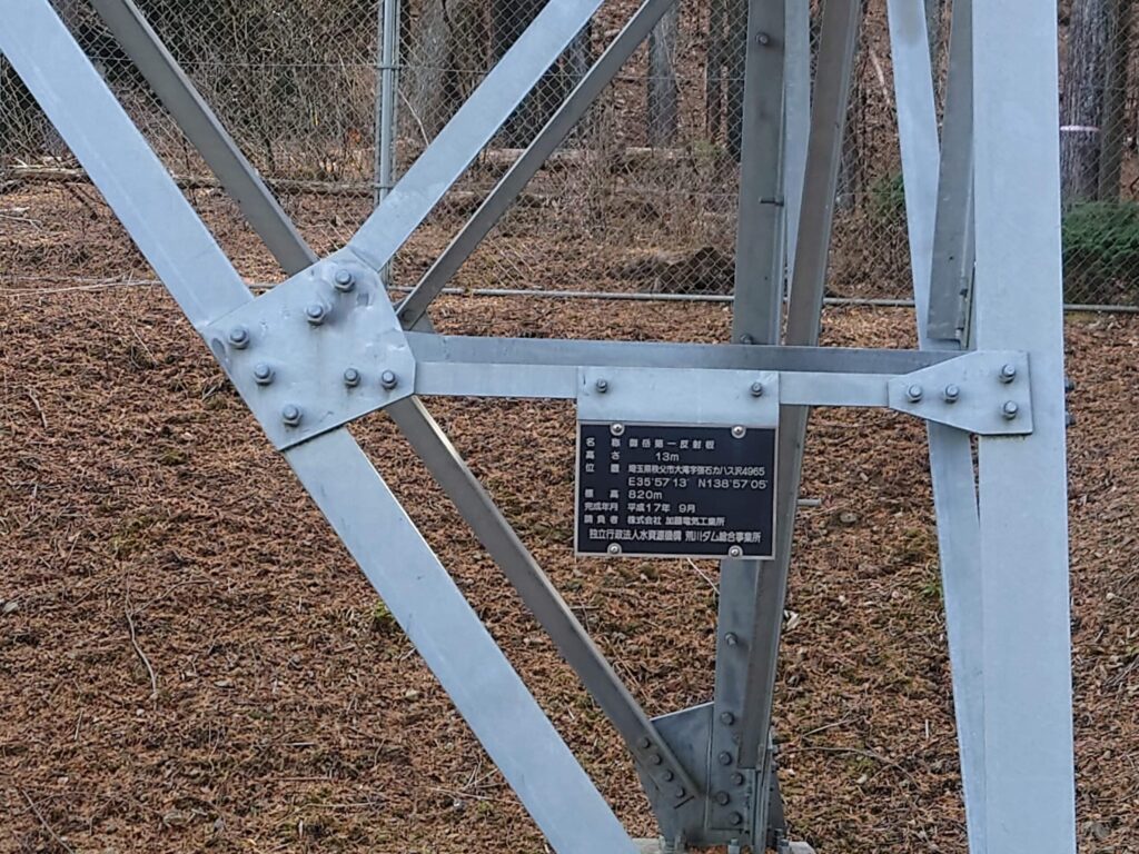 手がかりありました。「御岳第一反射板」とあります。設置した企業者は「独立行政法人水資源機構 荒川ダム総合事業所」とあります。ますます謎です。