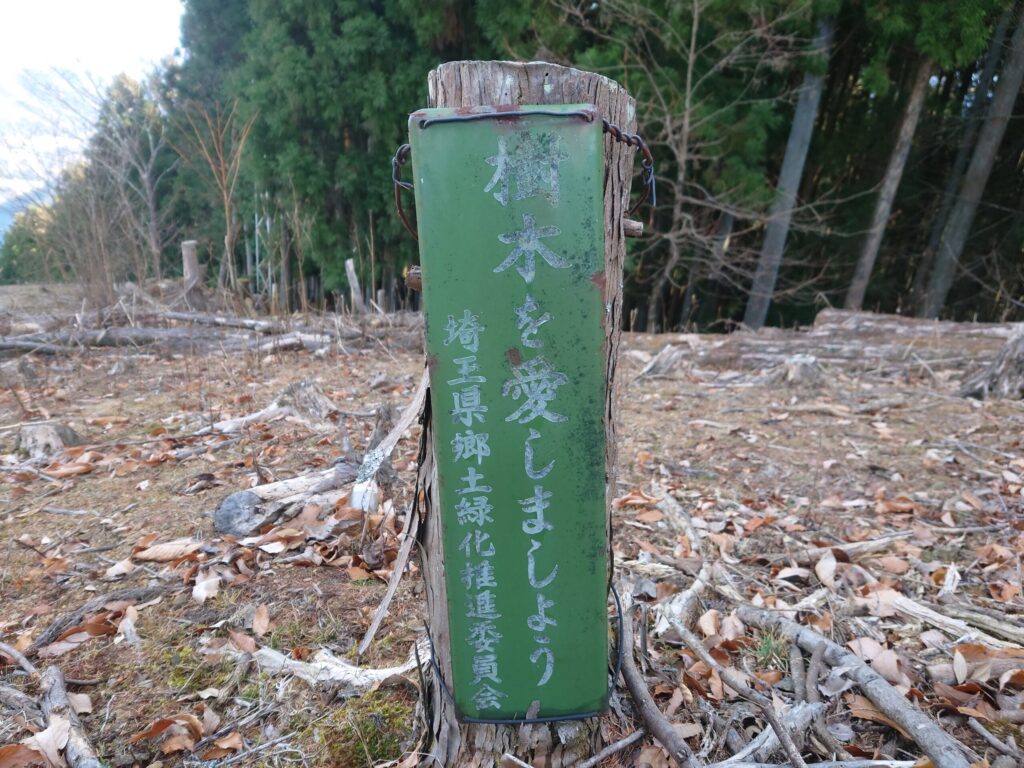見晴らしの良いところに着きました。右の尖った山は武甲山です。