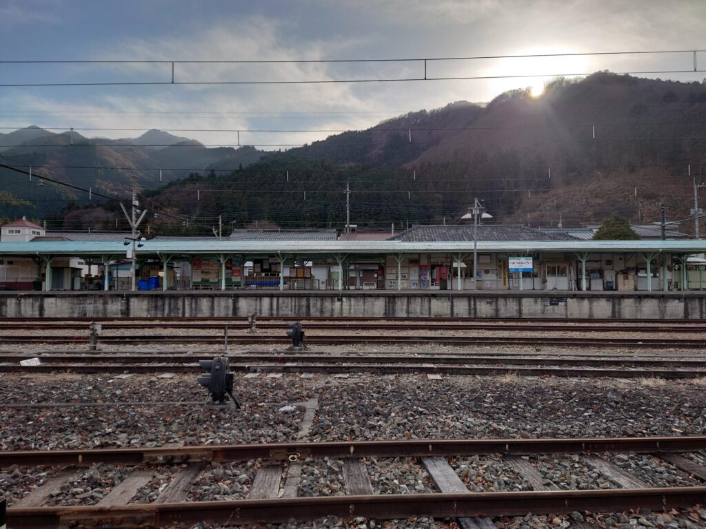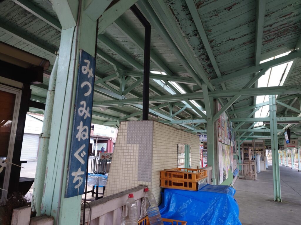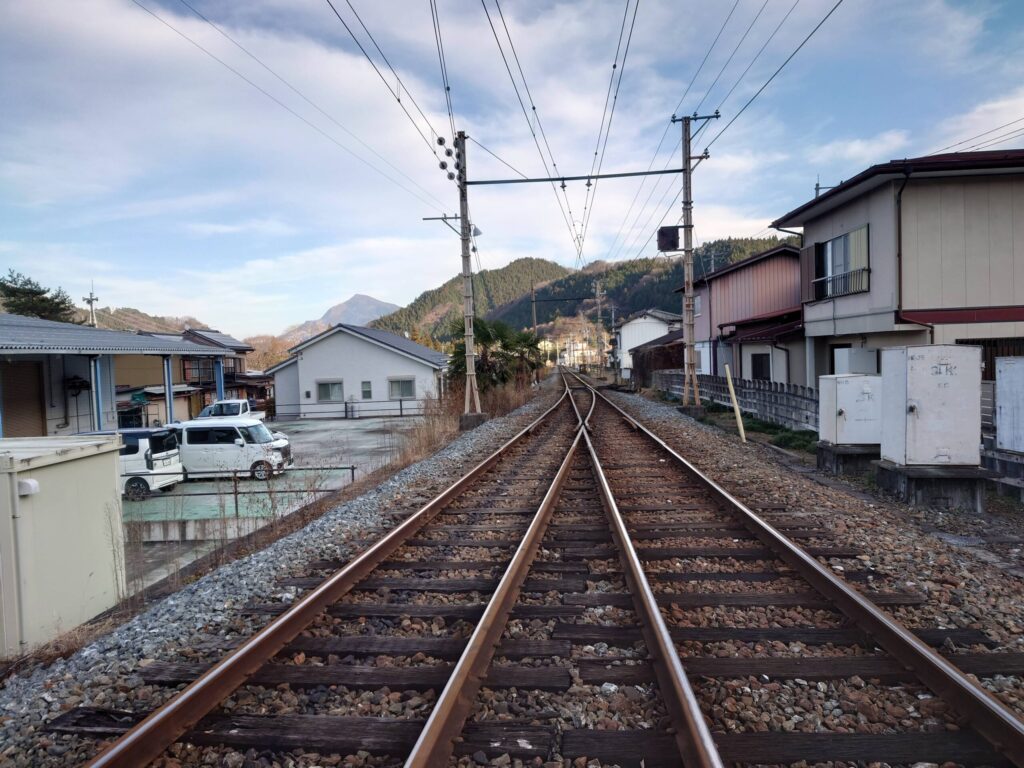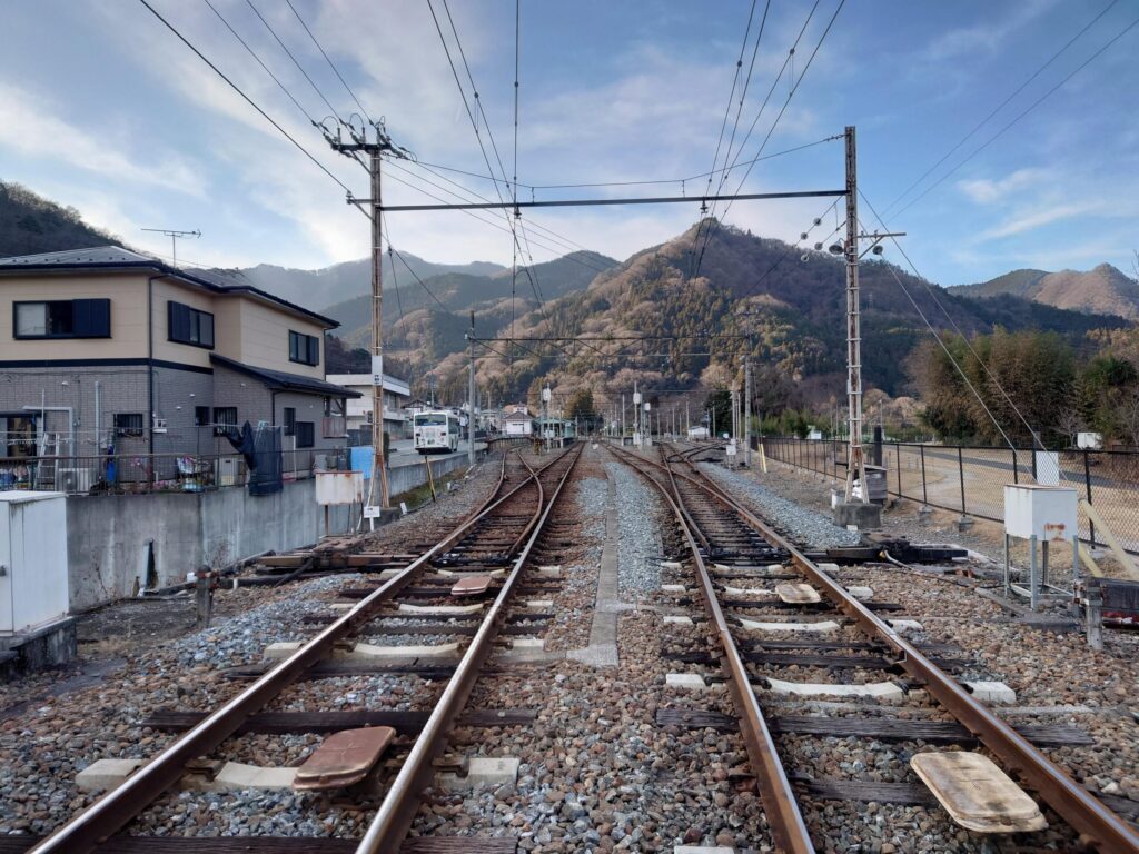 三峰口駅方面です。終着駅の郷愁を誘います。