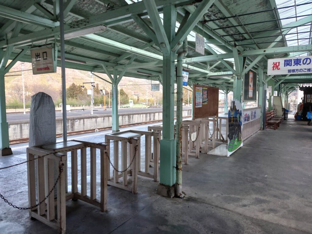 「関東の駅百選」に選ばれたようです。全ての駅、巡ってみたいです。団体入口とあります。かつて大勢の参拝客が出入りしていたことでしょう。駅員さんのリズミカルな改札鋏が聞こえてきそうです。