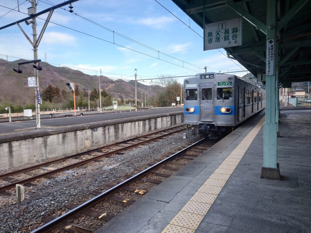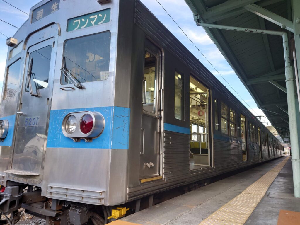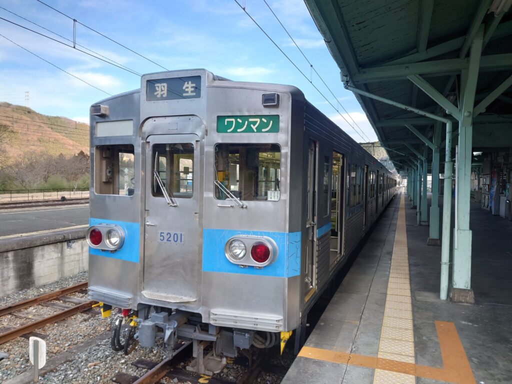 羽生行に切り替わりました。この電車に乗って帰ります。秩父鉄道5000系オールステンの車両です。かつて都営地下鉄三田線の車両を譲り受けたものです。昨今、西武鉄道などで言うサステナブル車両です。
