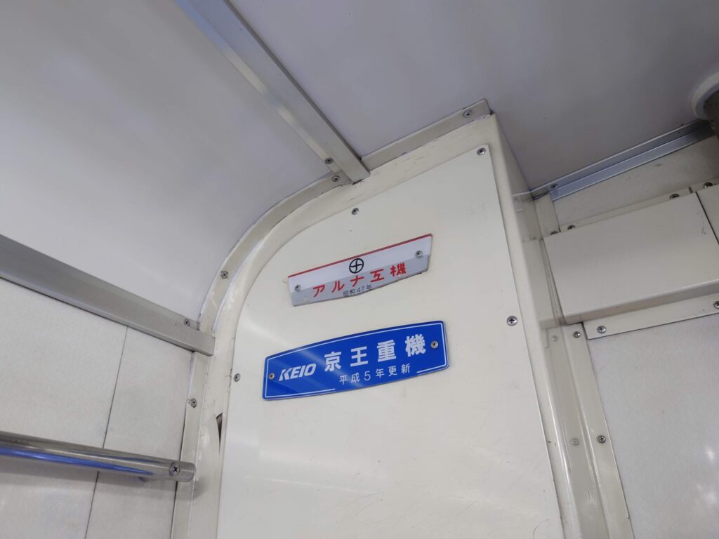 「アルナ工機、昭和47年」とあります。50年以上前の車両です。乗りましたがとても良い車両です。開閉時の注意音(まあまあ爆音。注意喚起なのでオッケー)、高速で閉まる扉(閉まる寸前スローなので、安全は担保されている)現代の車両には無いですが、50年以上前の車両でも頑張っています。製造会社アルナ工機は現在会社は清算されております。アルナとは「アルミのナニワ」からアルナ工機となったそうです。車両はステンレスです。アルナ工機はアルナ車両という会社に事業が引き継がれました。アルナ車両は路面電車で日本国内シェアNO.1です。昔から良いもの作っていたんですね。ありがとうございます。